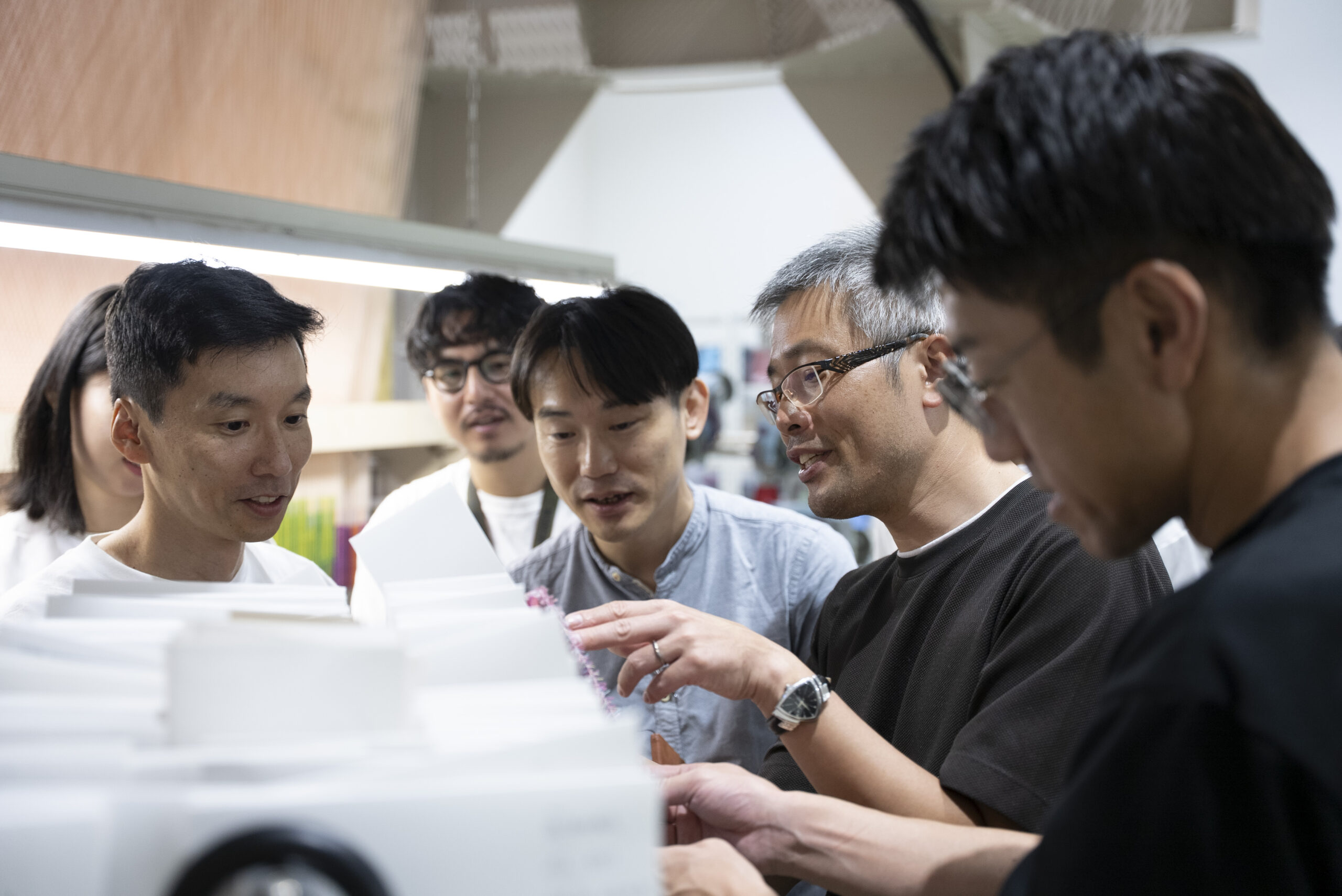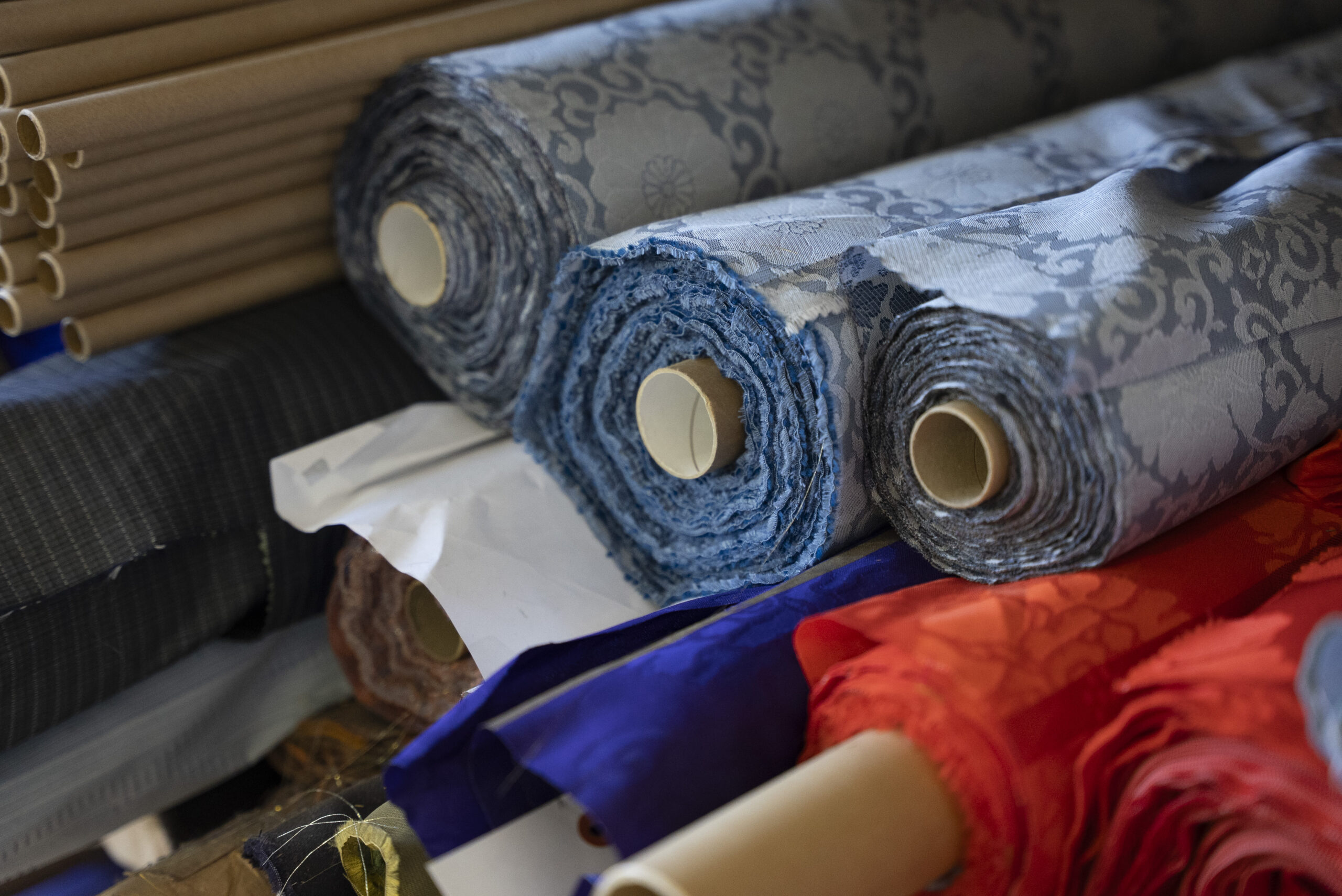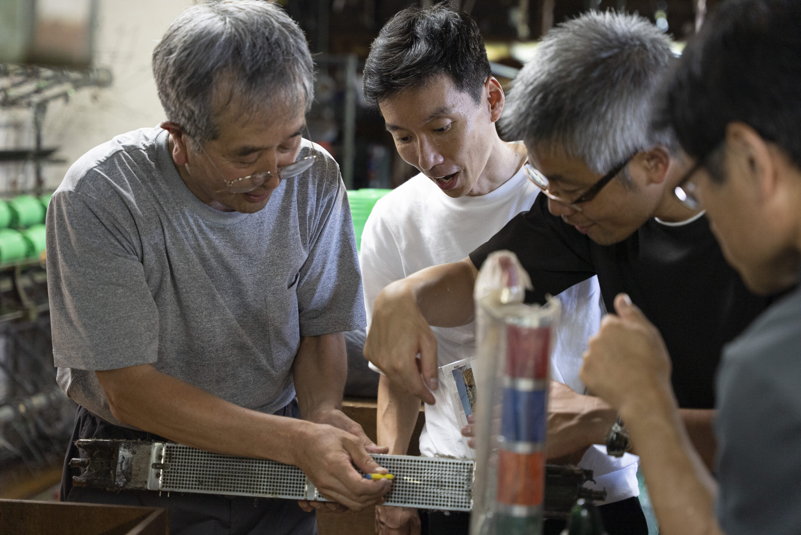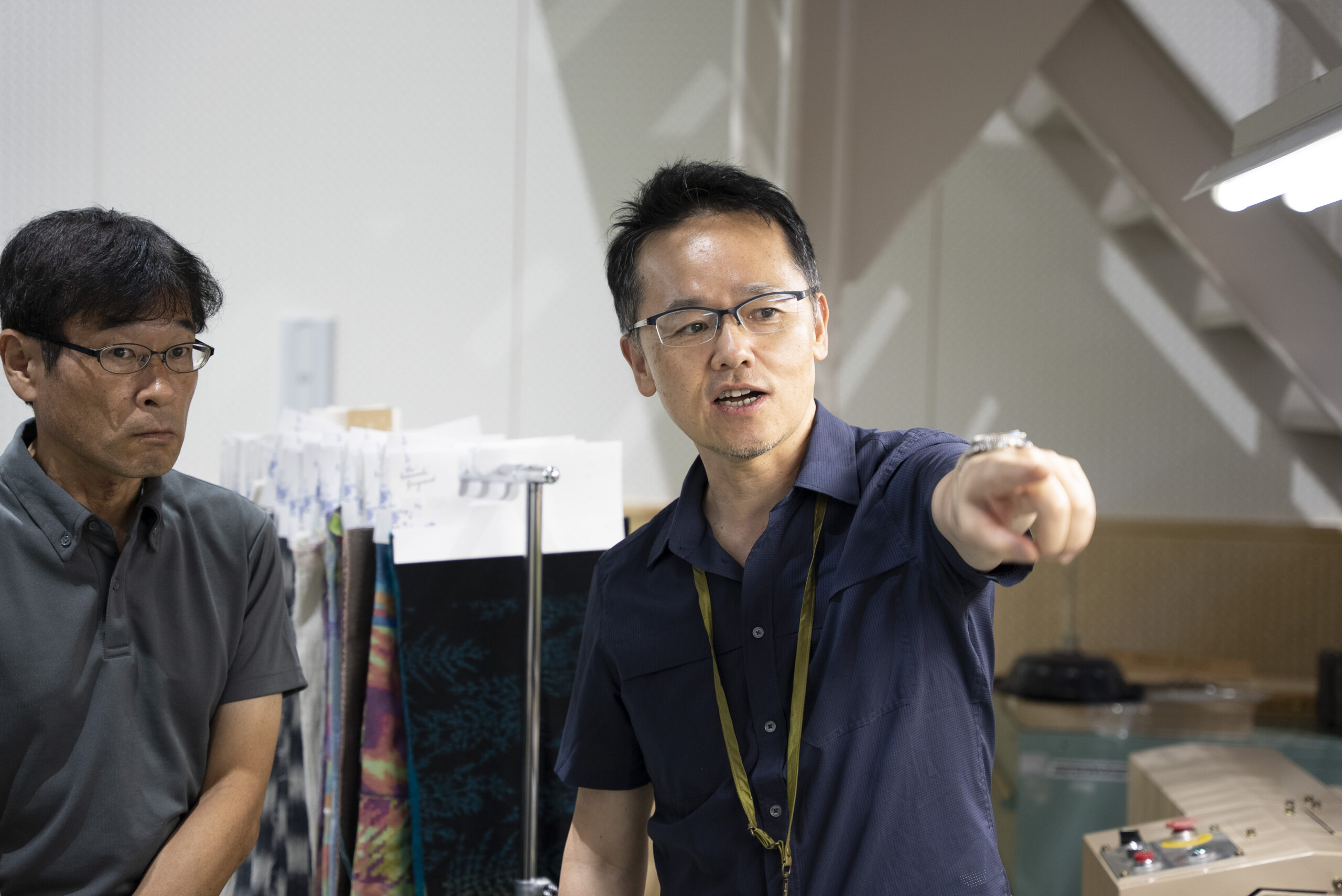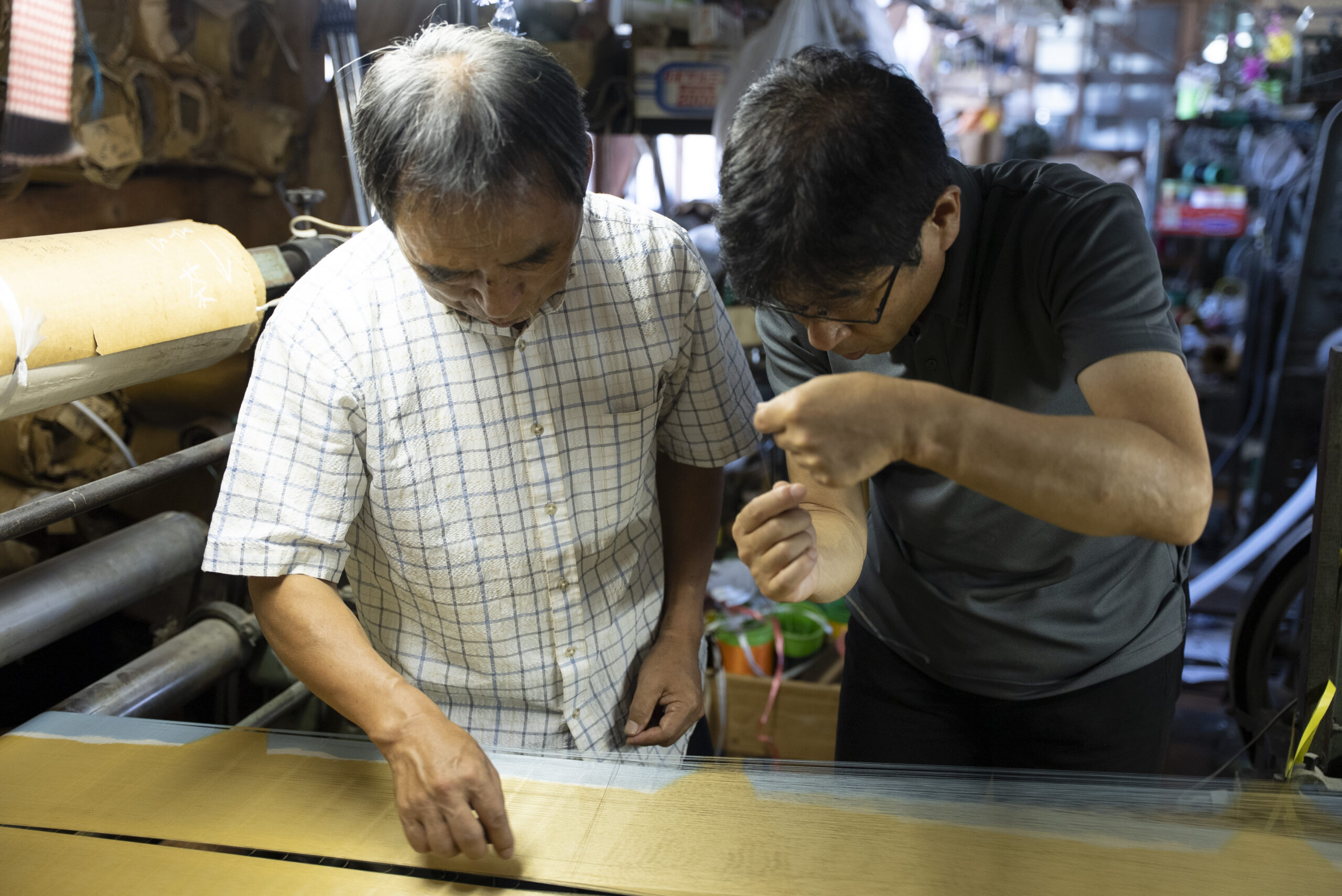 写真には残っていませんが、富士吉田に来ていただいたらぜひ寄っていただきたい北口本宮冨士浅間神社や、富士山駅にある、産地の商品を買うことが出来るミルショップに立ち寄り、実際に一日見てきた織物が商品になる様子もリサーチしていただきました。他の地域に比べると涼しいと言われる富士吉田も、この日は容赦ない日差しに包まれていました。それでも、工場のあちこちでは、その暑さを上回るほど熱のこもった対話が交わされ、ものづくりへの思いが響き合う、実り多い一日となりました。