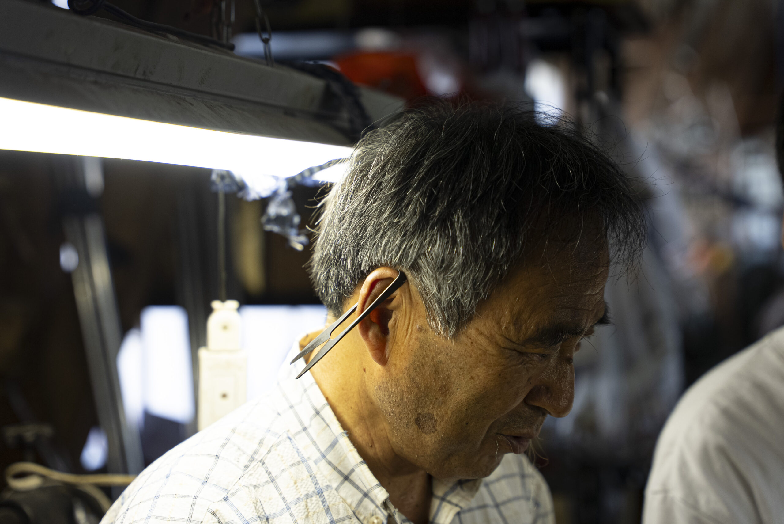 舟久保さんのトレードマークである、耳掛けハサミ!