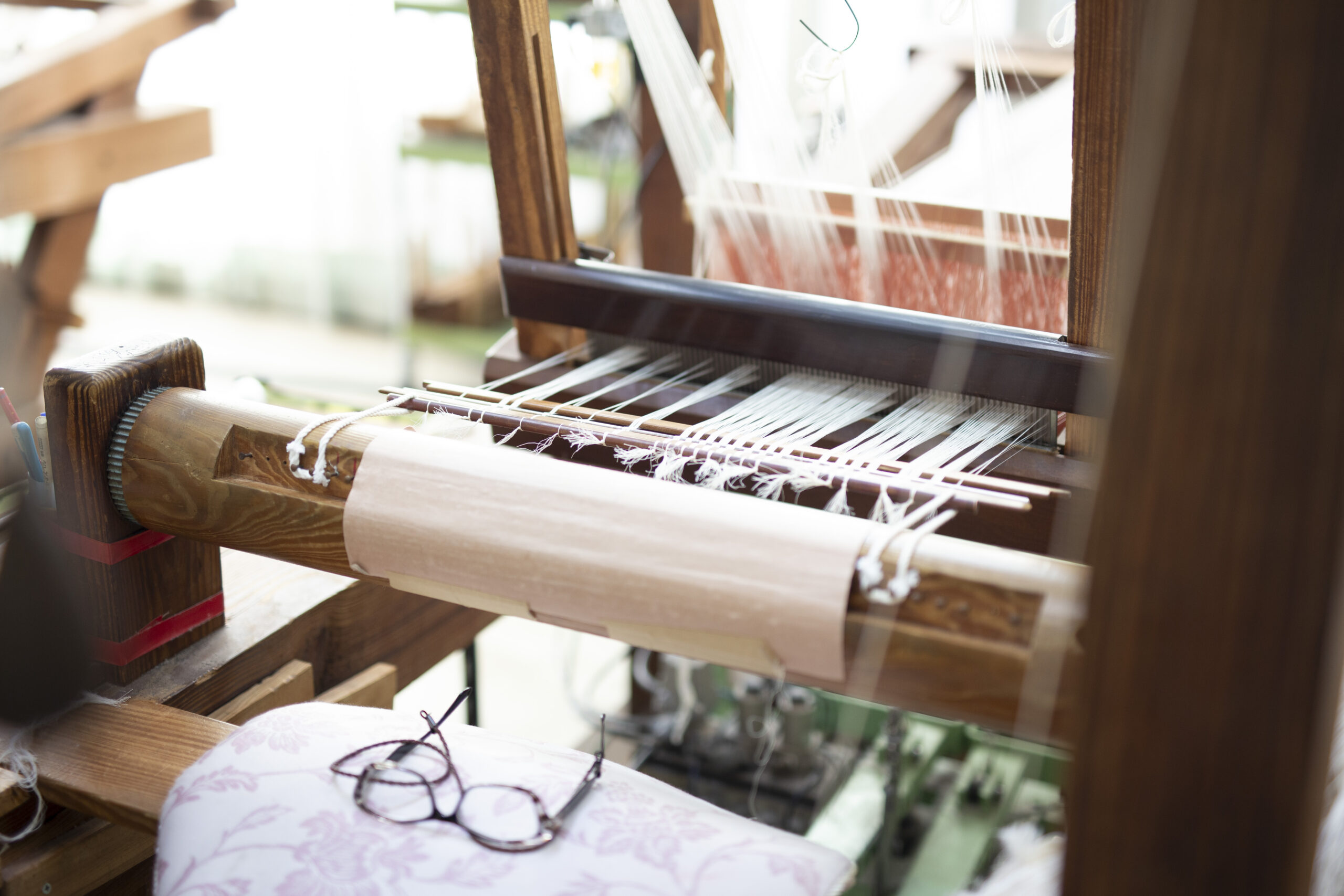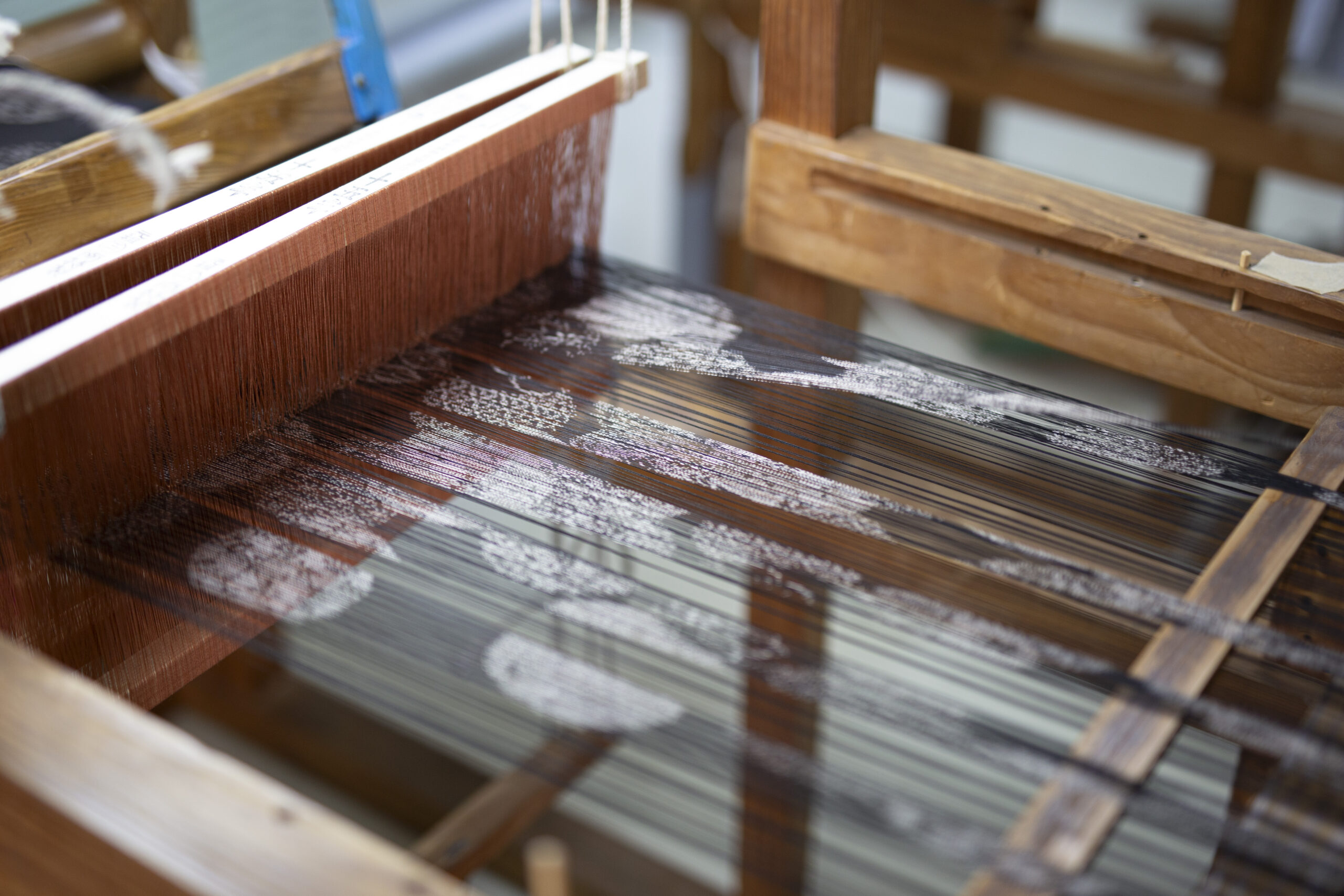 そして、ここでは製品検査だけではなく、実際に織職人が在籍し、大島紬を生み出しています。その工房の様子を見学させていただきました。