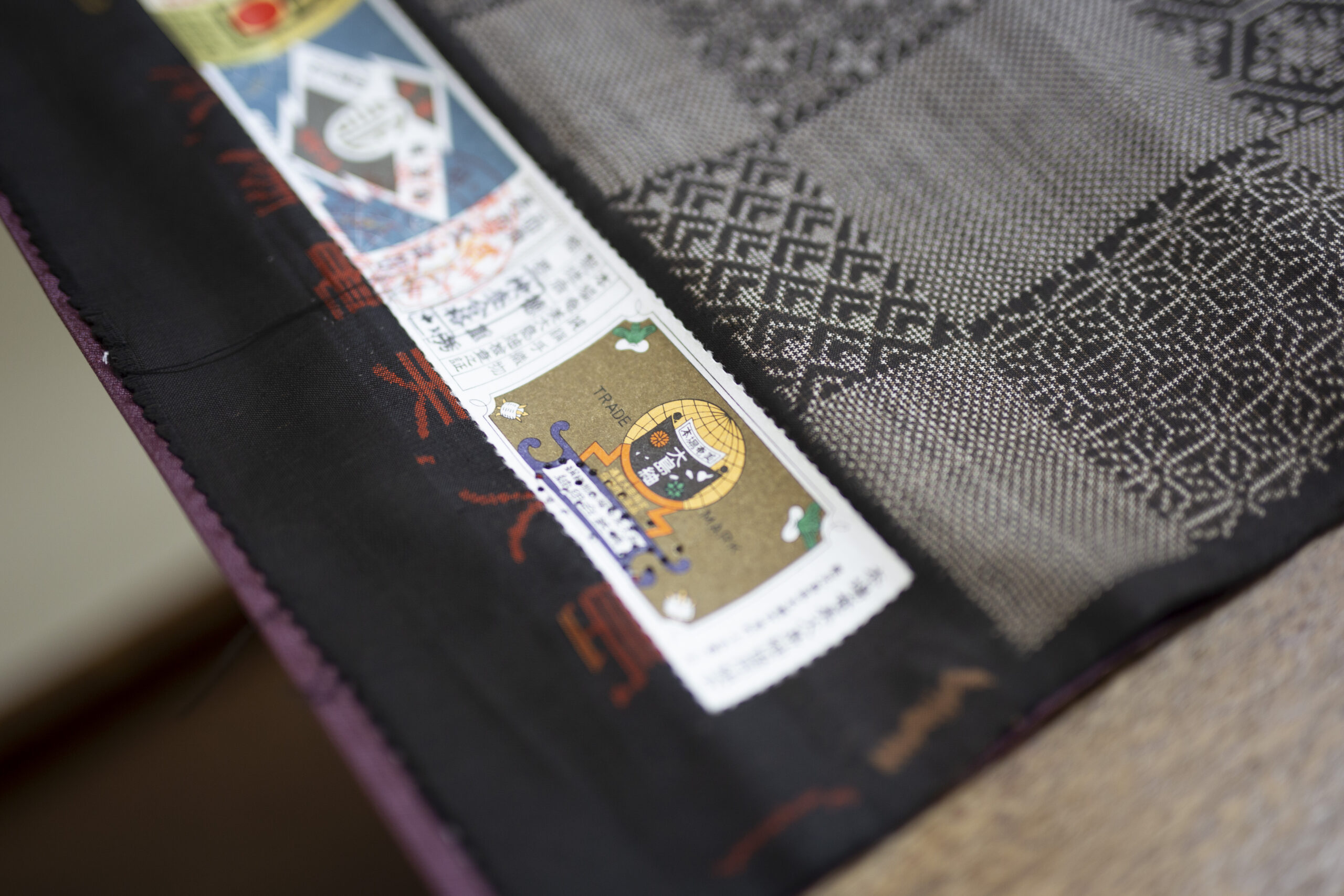 大島紬はコブラン織、ペルシャ絨毯に並んで世界三大織物といわれており、鹿児島県南方にある奄美群島の織物です。絹100%で出来ており、織る前に糸を染める「先染め」を行い、手織りの平織りで、絣合わせをして織上げたものは「本場大島紬」の名で伝統工芸品に指定されています。実は、郡内産地の幻の織物「甲斐絹」が裏地に、奄美大島の大島紬が表地に使われている羽織が多いというご縁もあります。