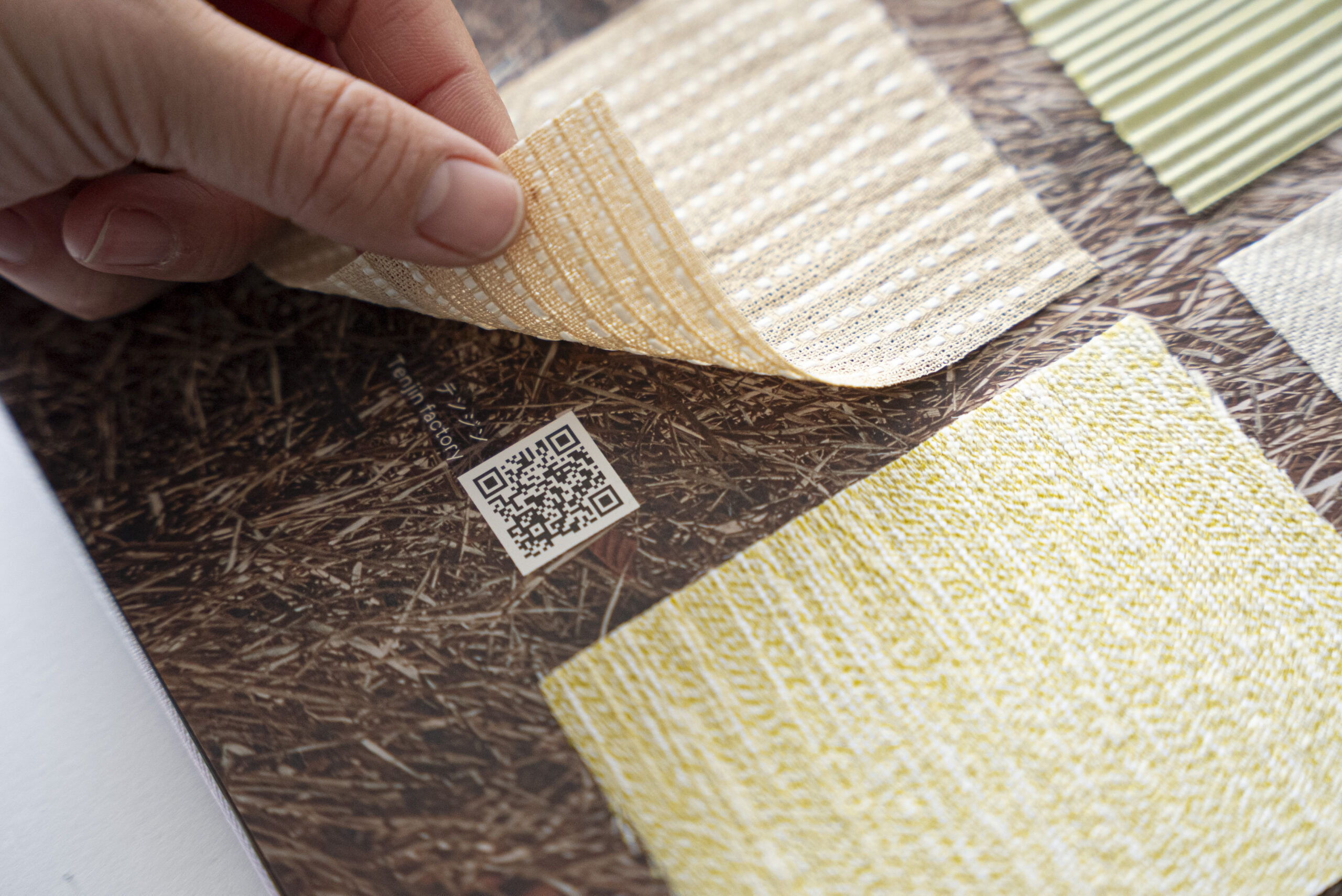また、生地サンプルページには各事業者へ直接アクセスできるQRコードを掲載。「MEET WEAVERS」のWEBサイトを通じて、デザイナーが産地とダイレクトにつながる仕組みを構築しています。