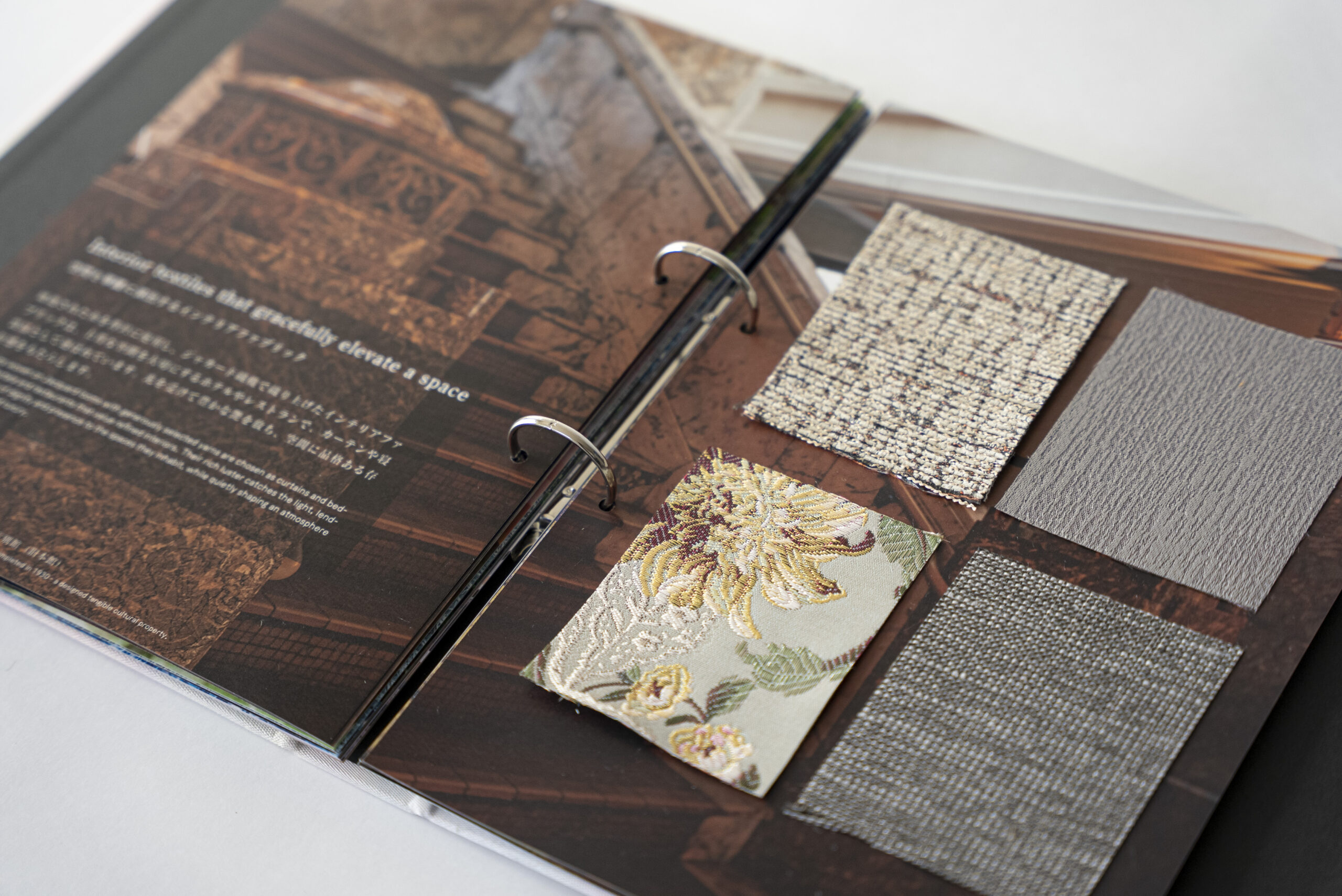 ビジネスマッチング用プロモーションブックは日本語・英語併記で構成され、国内外のトップデザイナーやファッションブランド、建築家などへ直接配布し、機屋さんとの新たなコラボレーション創出を目指しています。